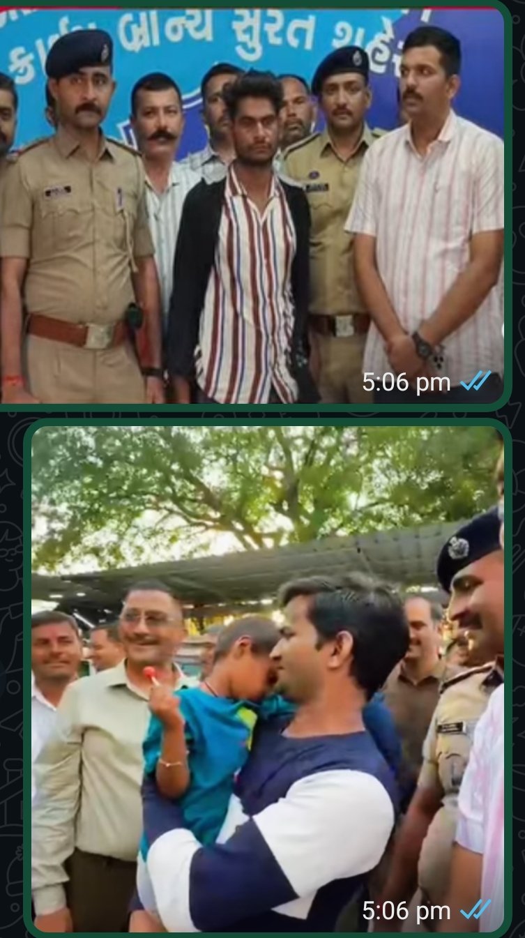 गुजरात प्रदेश सुरत शहर के अमरोली विस्तार से गुम चार साल की बच्ची को पुलिस ने अपहरण कर्ता के चंगुल में मुक्त करवाया और परिवार को सौंपा