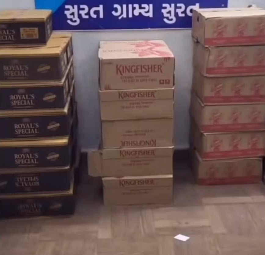 गुजरात प्रदेश सुरत जिला पुलिस द्वारा शराब माफियाओं पर नकेल कसते हुए जिले के दास्तान गांव में छापा मारकर लाखों रुपए कीमत की शराब जप्त कर