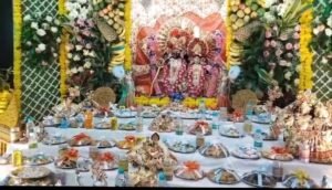 मंदिर के मुख्य महंत मुकेश चन्द पारासर ने बताया कि मंदिर परिसर में राधा और कृष्ण का आलौकिक श्रृंगार वृंदावन में तैयार पोशाक से कराया गया। भगवान श्रीकृष्ण को दिव्य छप्पन भोग लगाया और शहनाई वादन का विशेष कार्यक्रम आयोजित किया।