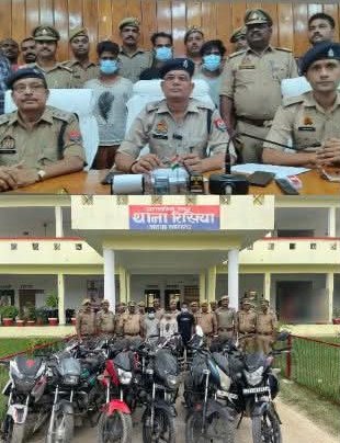 बहराइच पुलिस थानाध्यक्ष रिसिया मदनलाल की पुलिस टीम व स्वाट / सर्विलांस टीम प्रभारी मनोज सिंह यादव को लूट/वाहन चोरी की घटना से सम्बन्धित इनामिया अभियुक्त शिवम पाठक 20 हजार का तथा सहादत अली 15 हजार का और मिस्त्री , 3 अभियुक्तो को गिरफ्तार करने मे सफलता प्राप्त हुआ है तथा लूट /चोरी की गई 12 मोटरसाइकिल के साथ 01 देशी तमंचा 12 बोर, 02 जिंदा कारतूस , 2 मोबाइल व नगदी आदि बरामद कर इन 3 अभियुक्तो को जेल भेजा गया।