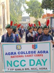 अर्जुन रौतेला। आगरा कॉलेज, आगरा की गर्ल्स विंग द्वारा आज दिनांक 30 नवंबर 2025 को एनसीसी डे समारोह के अंतिम चरण में एक भव्य एनसीसी परेड का आयोजन किया गया। परेड में कैडेट्स ने आगरा कॉलेज से मार्च करते हुए सेंट जॉन्स कॉलेज तक एवं वहाँ से पुनः आगरा कॉलेज लौटकर जनमानस को एनसीसी के महत्व एवं राष्ट्रीय चेतना के प्रति जागरूक किया।
