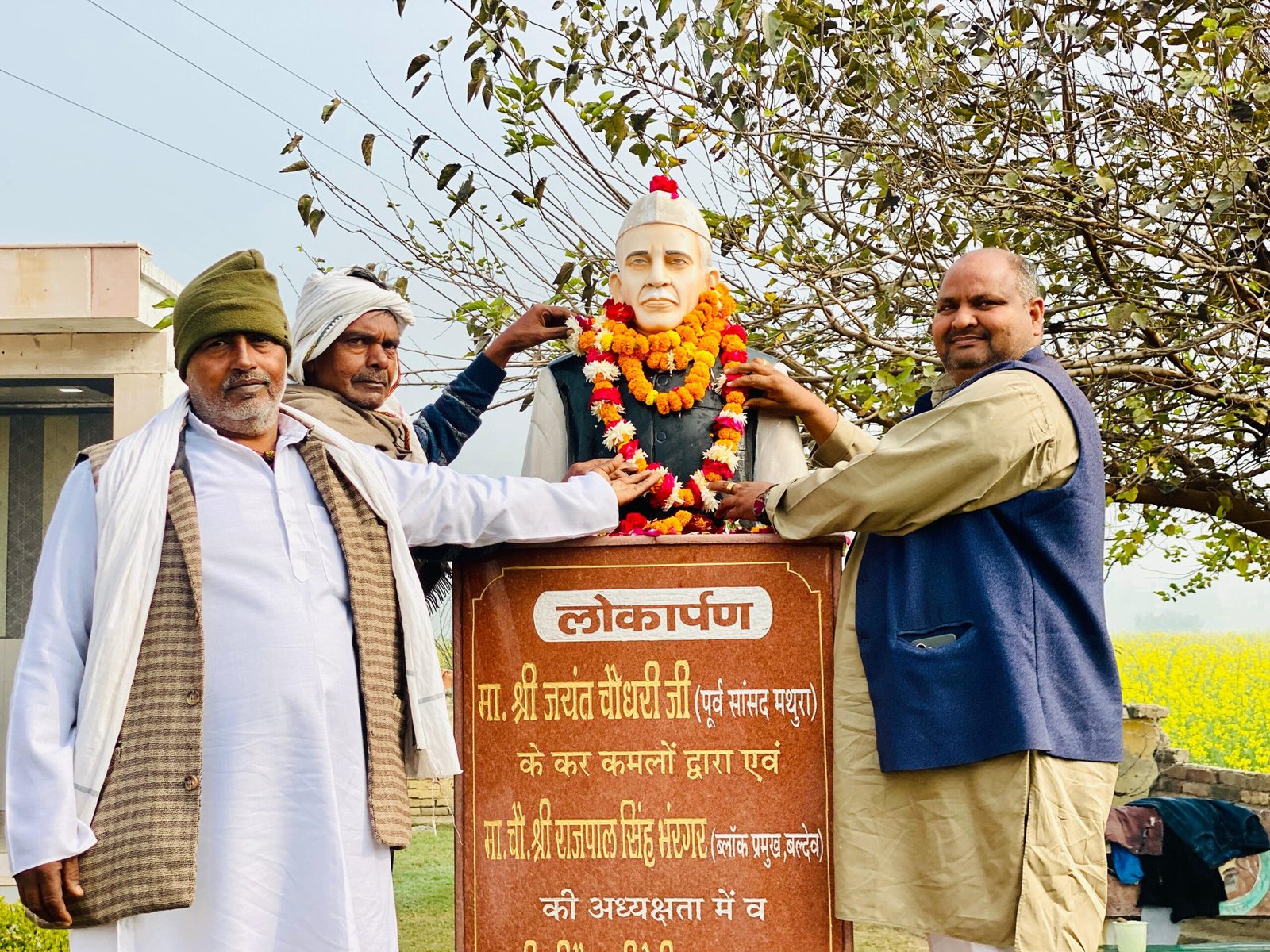 विधायक प्रतिनिधि बलदेव ब्लॉक चौधरी लेखराज सिंह प्रधान अवैरनी व दर्जनों किसान नेताओ और कार्यकर्ताओं ने चौधरी साहब की मूर्ति पर माल्यार्पण कर किसान हित में लिए गए निर्डयों को याद किया।