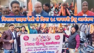 आगरा। जनपद आगरा के दयालबाग क्षेत्र में आगामी १८ जनवरी को आयोजित होने वाले विराट हिन्दू सम्मेलन को ऐतिहासिक बनाने के लिए सैकड़ों सनातनी युवा मोटरसाइकिल लेकर सड़क पर पहुंचे और स्थानीय लोगों को आगामी 18 जनवरी 2026 को चौधरी बीरी सिंह इंटर कॉलेज, दयालबाग में समय 12 बजे से 03 बजे तक के होने वाले विराट हिन्दू सम्मेलन के लिए आमंत्रित किया।