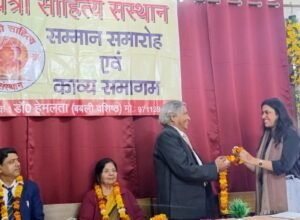 संवाददाता अर्जुन रौतेला आगरा। गायत्री साहित्य संस्थान, सिविल लाइंस, नई दिल्ली द्वारा शर्मा न्यू आर्ट्स कॉलेज में 11वां स्थापना दिवस और सम्मान समारोह आयोजित किया गया। संस्थान की संस्थापिका बबली वशिष्ठ द्वारा अपने माता-पिता की स्मृति में आयोजित इस समारोह में साहित्यकारों और पत्रकारों को सम्मानित किया गया।