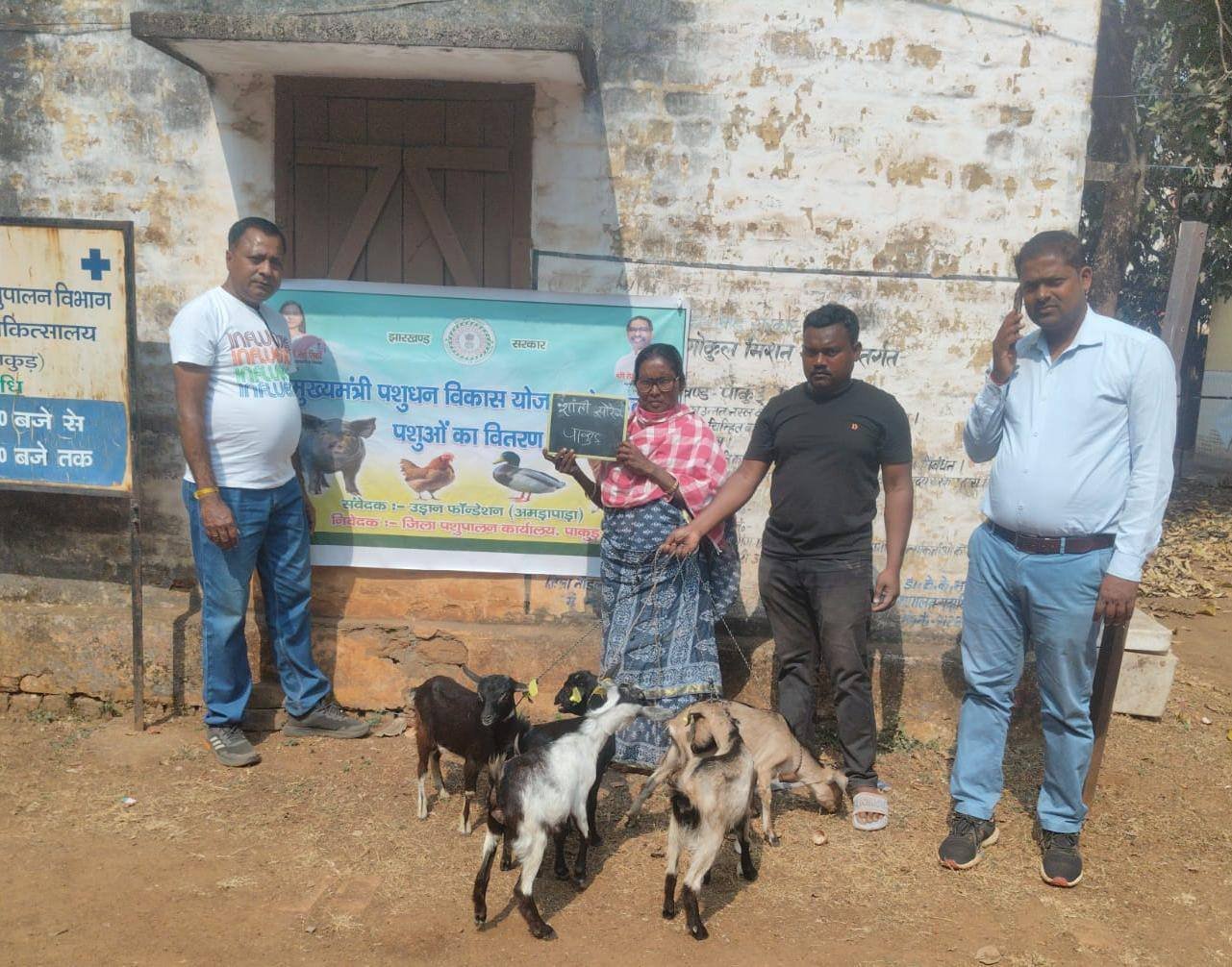 पाकुड़: ग्रामीण आजीविका को सुदृढ़ करने एवं पशुपालन को बढ़ावा देने के उद्देश्य से मुख्यमंत्री पशुधन विकास योजना के तहत पाकुड़ प्रखंड अंतर्गत प्रांतीयकृत पशु चिकित्सालय परिसर में पशुधन वितरण शिविर का आयोजन किया गया। कार्यक्रम का आयोजन जिला पशुपालन कार्यालय, पाकुड़ द्वारा किया गया।इस अवसर पर योजना के तहत चयनित 10 लाभुकों के बीच बकरा-बकरी प्रजनन इकाई का वितरण किया गया। इस पहल से लाभार्थियों को स्वरोजगार का अवसर मिलने के साथ-साथ आय वृद्धि का सशक्त माध्यम प्राप्त होगा। अधिकारियों ने कहा कि राज्य सरकार की यह महत्वाकांक्षी योजना ग्रामीण परिवारों की आर्थिक स्थिति मजबूत करने और आत्मनिर्भरता बढ़ाने की दिशा में एक महत्वपूर्ण कदम है।कार्यक्रम के दौरान उपस्थित अधिकारियों ने लाभार्थियों को पशुओं की समुचित देखभाल, नियमित टीकाकरण एवं वैज्ञानिक पशुपालन पद्धति अपनाने की सलाह दी। उन्होंने कहा कि यदि लाभार्थी प्रशिक्षण के अनुरूप पशुपालन करेंगे तो वे बेहतर उत्पादन और आय सुनिश्चित कर सकेंगे।इस अवसर पर जिला पशुपालन पदाधिकारी, पाकुड़ डॉ. नीरज कुमार गुप्ता, पशु शल्य चिकित्सक, विधायक प्रतिनिधि, प्रखंड पशुपालन पदाधिकारी सहित अन्य संबंधित पदाधिकारी एवं लाभुक उपस्थित रहे।कार्यक्रम का समापन लाभार्थियों को शुभकामनाएं देते हुए किया गया तथा आशा व्यक्त की गई कि योजना के माध्यम से ग्रामीण अर्थव्यवस्था को नई मजबूती मिलेगी।