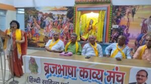 संवादाता अर्जुन रौतेला आगरा। ब्रजभाषा एवं हिन्दी साहित्य को समर्पित देश की ख्यातिलब्ध संस्था ब्रजभाषा काव्य मंच,आगरा के तत्वावधान में सरस्वती शिशु मंदिर,दीनदयाल नगर में एक वृहद कवि सम्मेलन का आयोजन किया गया जिसमें पूरे ब्रज मंडल के प्रख्यात कवि व कवयित्रियों ने काव्य की ऐसी रसधार बहायी कि पूरा प्रांगण तालियों एवं वाह-वाह से गुंजायमान होता रहा।